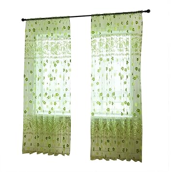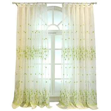 Amazon De Top Finel Gestickte Kariert Voile Gardinen Krauselband